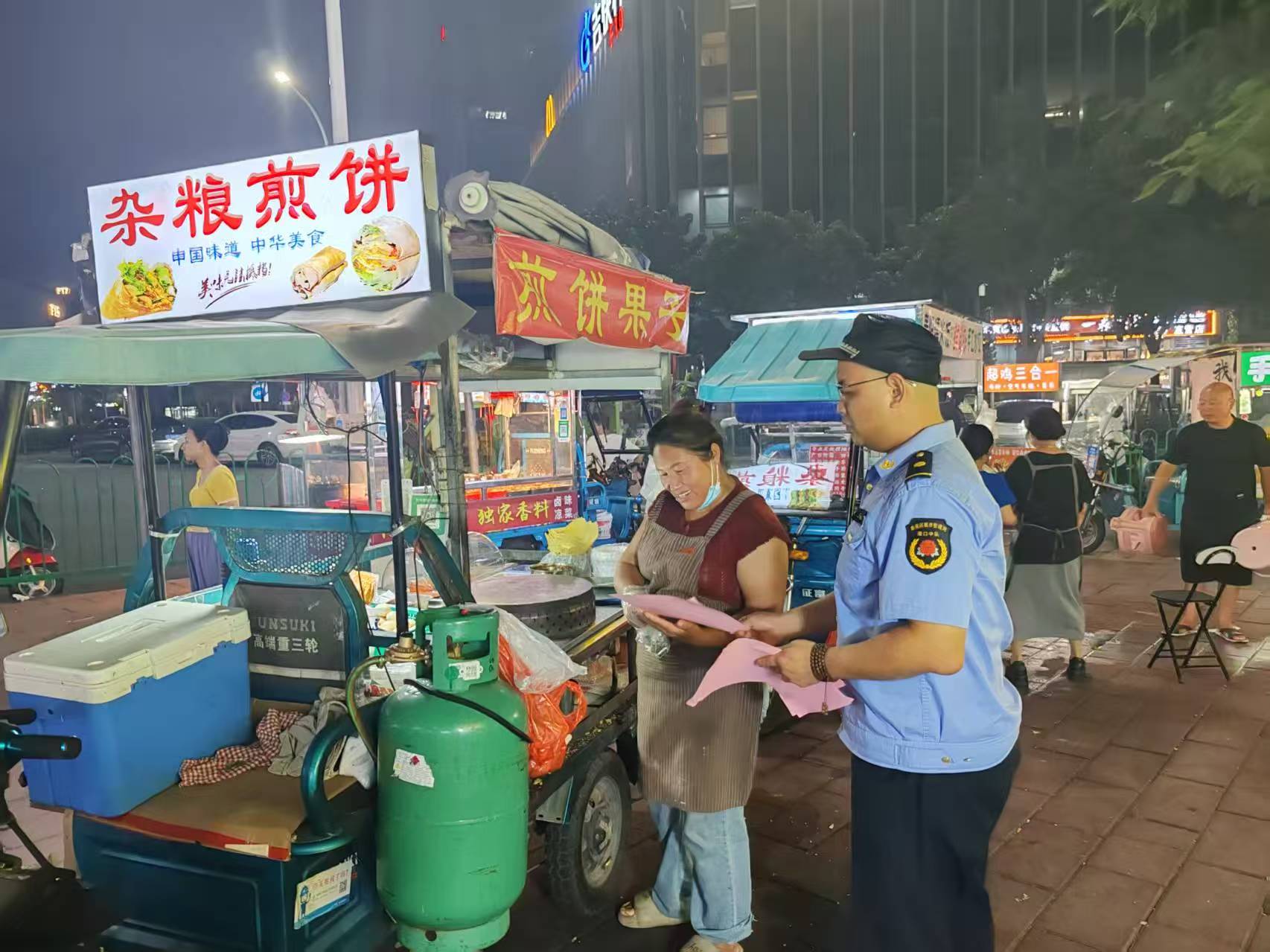 活动中,执法人员还联动物业,向周边市民、商铺发放并张贴《倡议书》250余份,呼吁大家诚信经营共同抵制占道经营,关注摊贩食品安全,携手维护整洁有序的生活环境。这场既有法律温度、又含民生关怀的宣传,不仅让诚信经营的种子落地生根,更推动着文明新风在街头巷尾悄然蔓延。